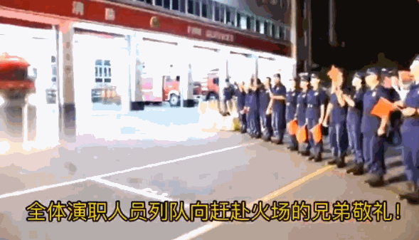 向奔赴火場的消防員敬禮
